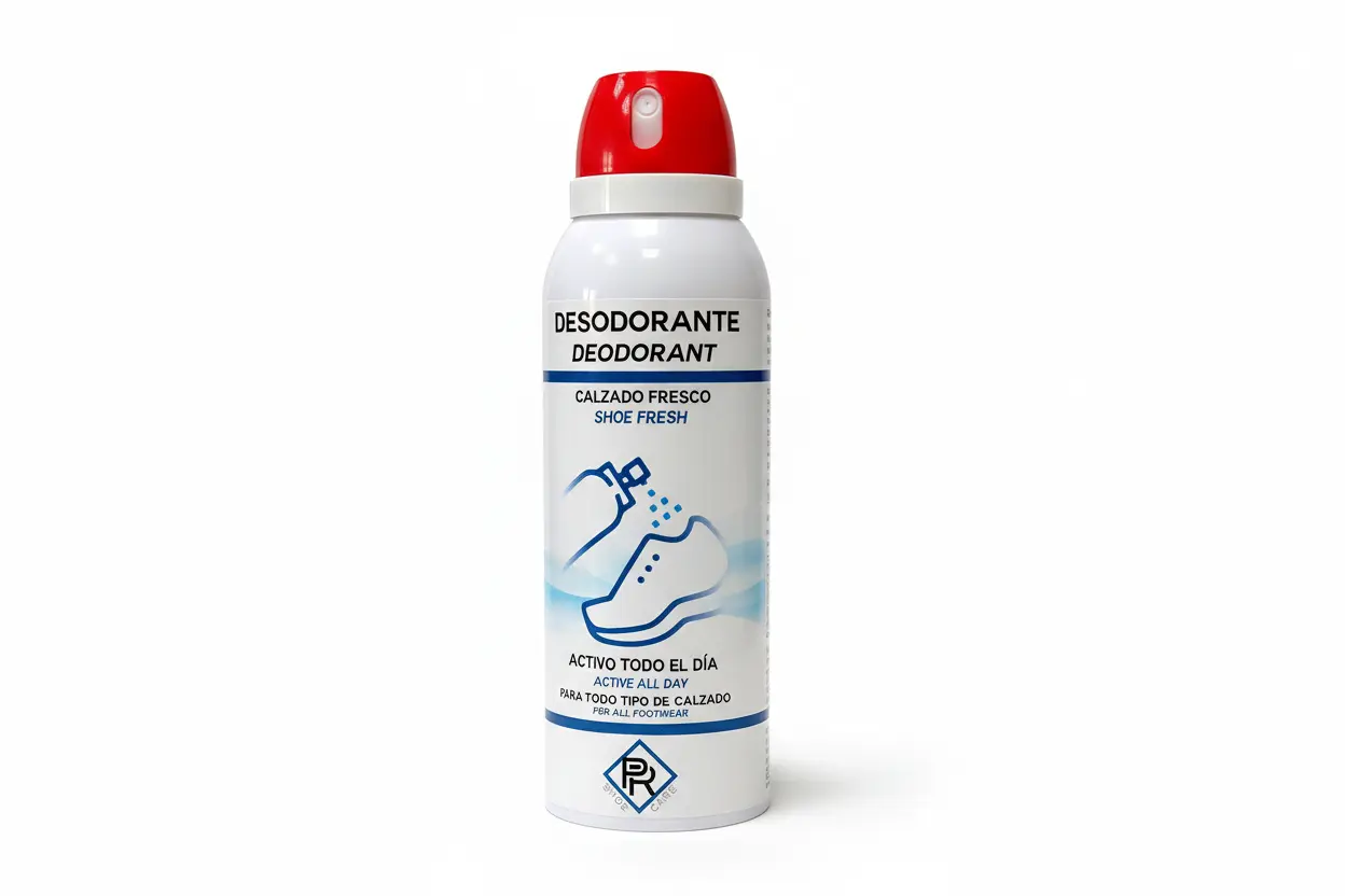 Nuestro SPRAY DESODORANTE contiene una fórmula extra higiénica que neutraliza los malos olores y ayuda a mantener una perfecta higiene en su calzado, estando activo su agradable aroma durante todo el día con una sola aplicación. Recomendamos utilizarlo cada vez que se retiren los zapatos antes de guardarlos. Válido para todo tipo de calzado. Es muy importante nunca aplicar en la parte exterior. Agitar bien el producto antes de usarlo. Aplicar en la parte interior de su calzado. Dejar secar durante 3 minutos.